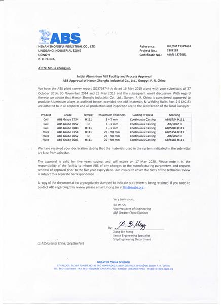 美國船級社(ABS)認證證書