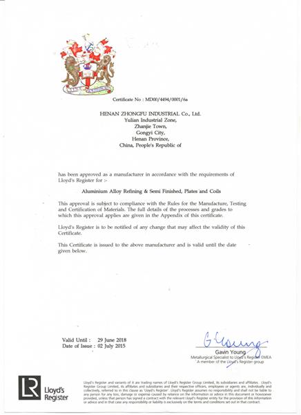 英國勞氏船級社(LR)認證證書